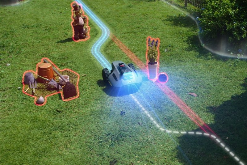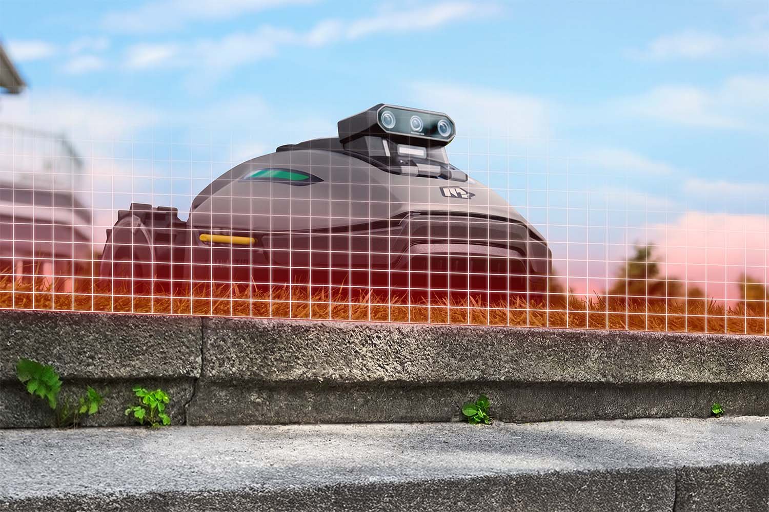 Detekuje neviditelné hranice a zůstává ve vymezených oblastech sečení, aniž by se spoléhala na satelitní signál. Díky systému vidění identifikuje travnaté a netravnaté plochy, čímž zajišťuje, že se přesně vyhýbá no-go zónám.